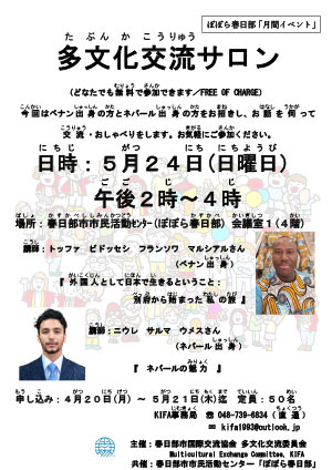 A new committee called Multicultural Exchange Committee was recently set up in the KIFA. Its main objectives are to organize activities to promote exchanges and mutual understandings between Japanese citizens and foreign citizens living in our local community. If you are interested in such activities, please join us and call the KIFA secretariat. Japanese citizens and foreign citizens are both welcome.